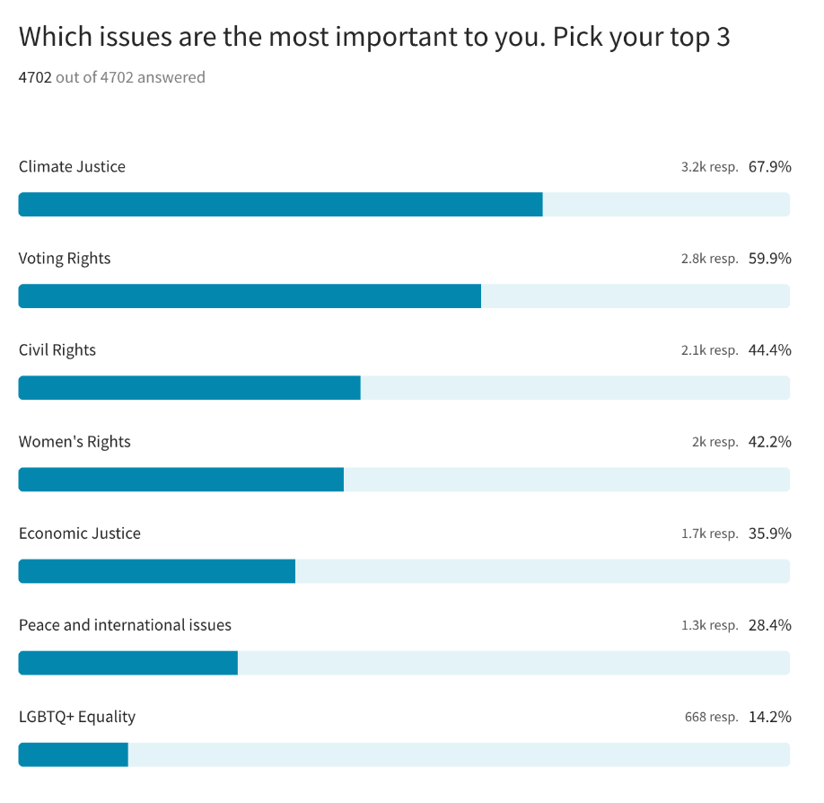 Each month, CREDO members vote on how we distribute funding to three incredible organizations. Those small actions add up – with one click, you can help fund groups fighting for civil rights, reproductive rights and economic justice. In October, over 55,000 CREDO members voted to distribute $150,000 in donations to Center for Media Justice, Planned Parenthood and Working Families Party.